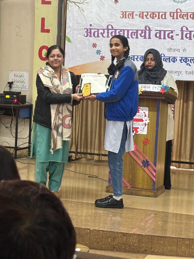 For students of Classes 6 to 8, a Debate Competition was organized. Sharanya Kushwaha represented our school and spoke confidently in favor of the motion. She was awarded the Best Speaker Prize for her clarity of thought and effective presentation.